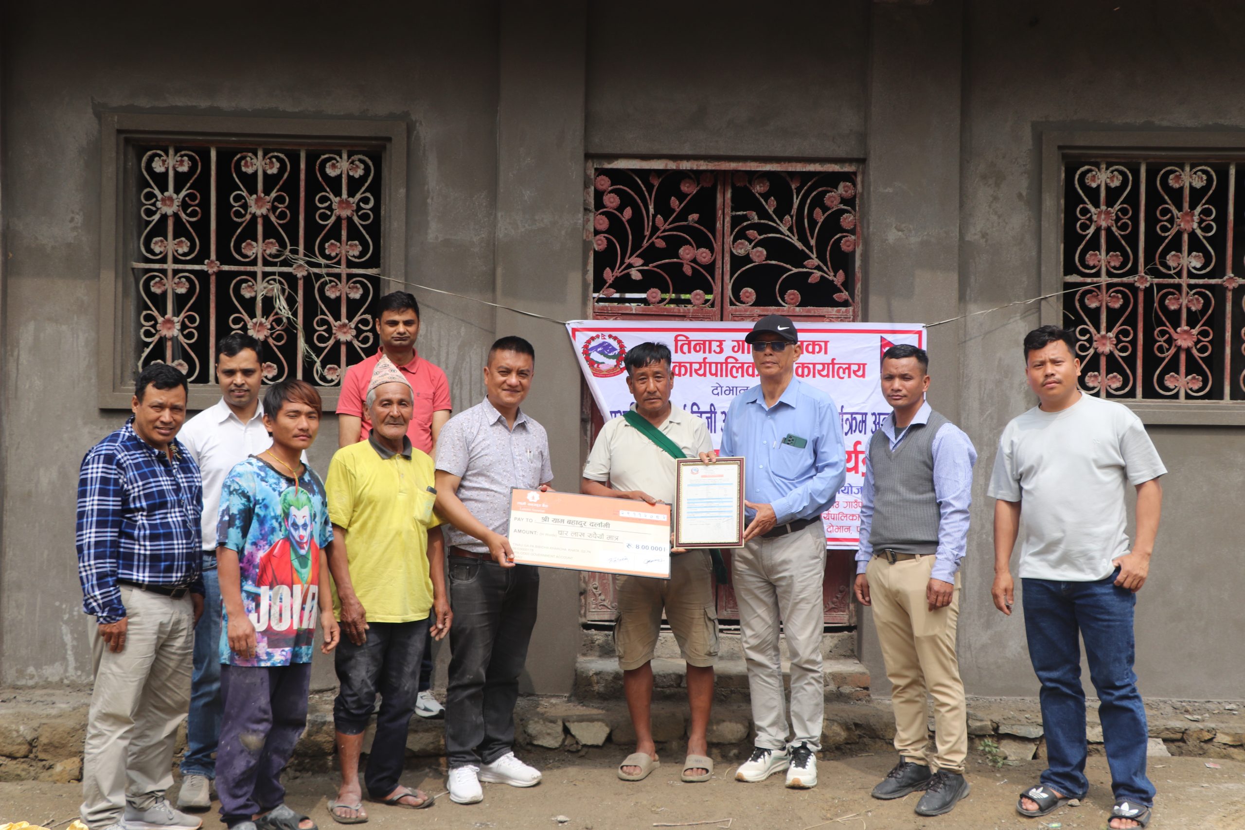 यी आवासहरू केवल सरकारी अनुदानले मात्र बनेका होइनन्, यसमा लाभग्राहीको स्वामित्व र कडा परिश्रम पनि जोडिएको छ । संघीय सरकार, लुम्बिनी प्रदेश सरकार र तिनाउ गाउँपालिकाको लागत साझेदारीमा प्रति परिवार ४ लाख रुपैयाँ अनुदान उपलब्ध गराइएको थियो ।