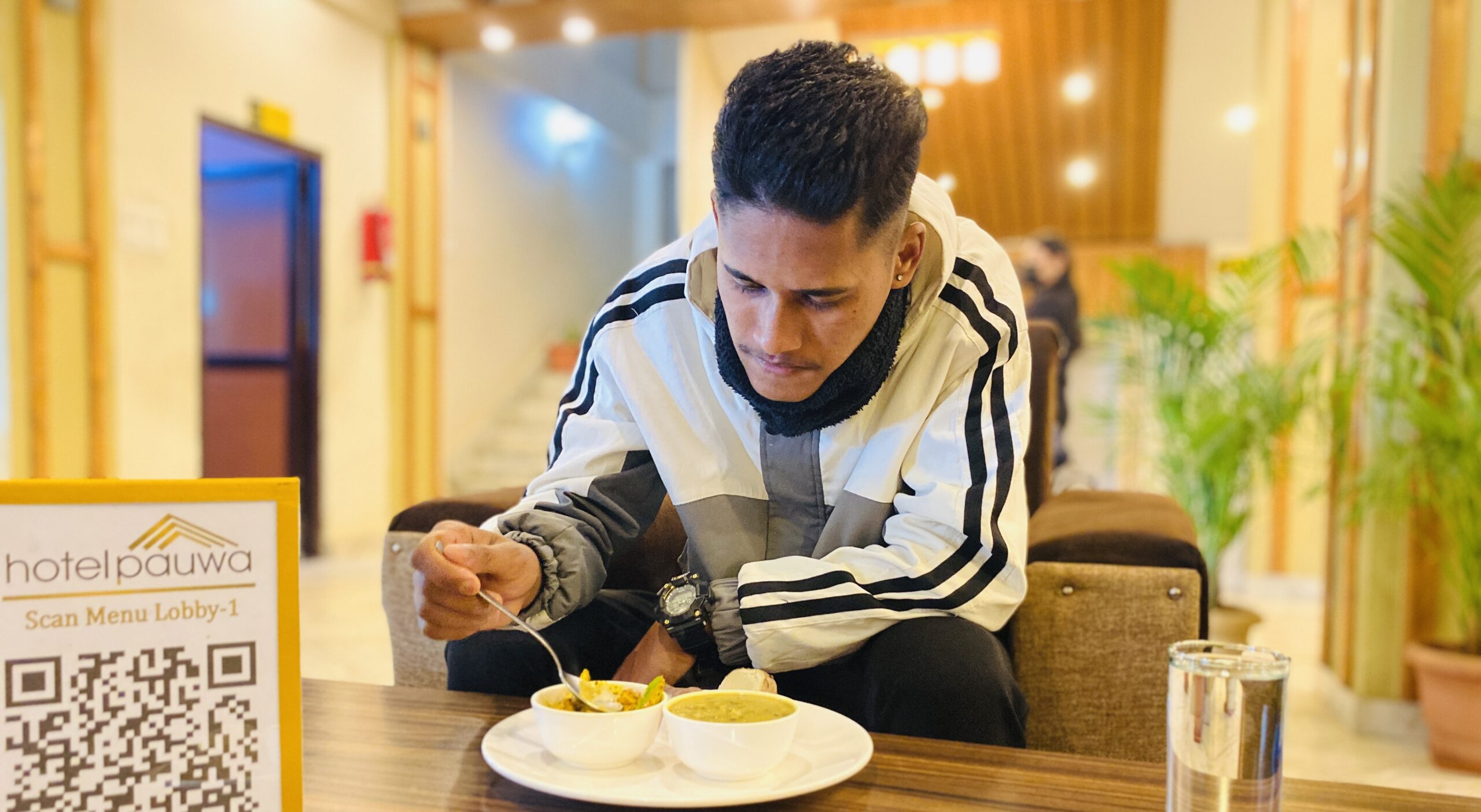 ग्राहकलाई माघे सक्रान्ती विशेष खिचडी खुवाउँदै होटल पौवा