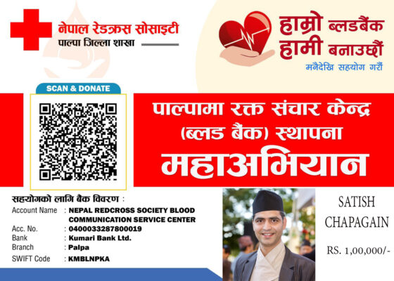 पाल्पामा ब्लड बैंक स्थापनार्थ चापागाईको एक लाख सहयोग