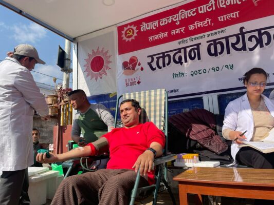 एमाले तानसेन नगर कमिटीको रक्तदान, २१ जना सहभागी